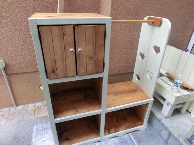 解体した木材を捨てるのはもったいないのでネジ穴が無い所が表に出るようにしてネジ穴があるところは内側で使いました