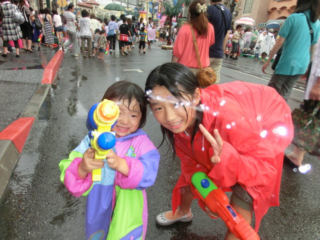 ウォーターショーの後に写真を撮っていたら海花がウォーターシューターで発射してきてデジカメラにかかりました(レンズの横に飛んできました。レンズにかからずデジカメは無事でした)