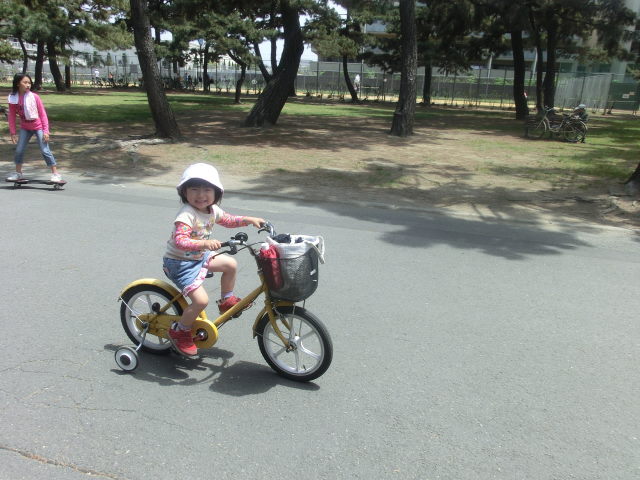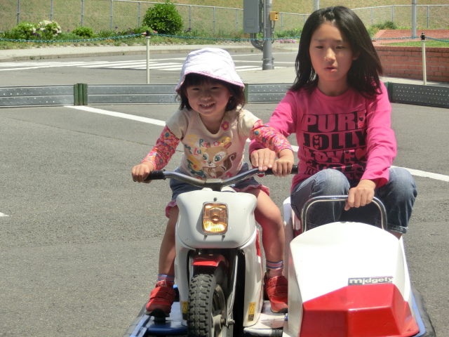 海花は「もう1回!もう1回!」で4・5回は乗りますが今回は2回目に運転ミスで段差でガードしているコンクートにぶつかりおでこを車にぶつけておお泣きでした