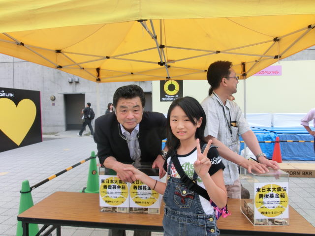 球場に入る前にちょうど元阪神の代打の切り札で阪神OB会の現会長の川藤選手?・・会長!と読売テレビの森?アナウンサーが東日本大震災の復興の募金活動をしていました