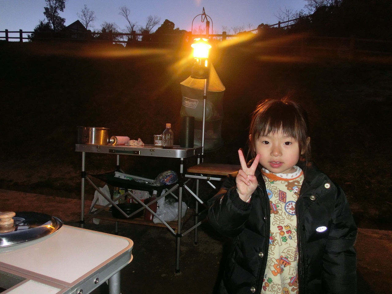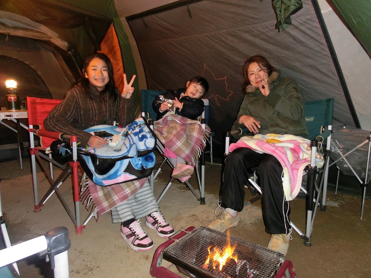 ここのキャンプ場は直火で焚き火ができないのでバーべキューコンロの炭で暖をとりました