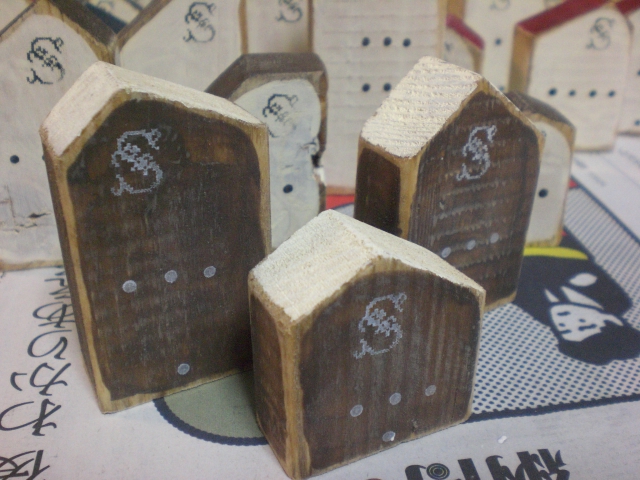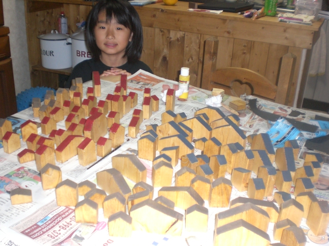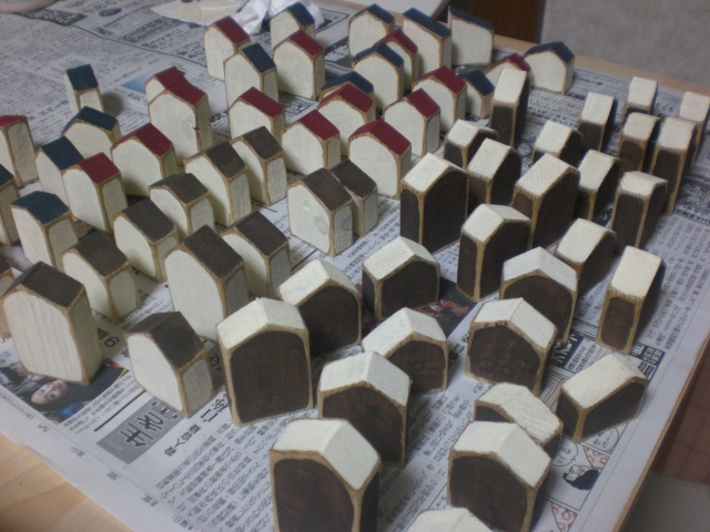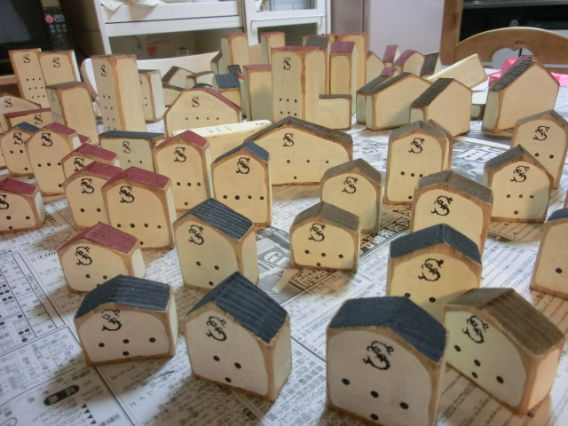 12日の「クローバー手作り市」に向けて在庫が少なくなっていた小さな木の家のペイントをしました
