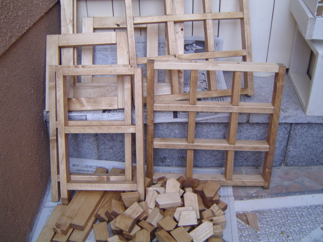 写真やイラスト小物などを飾るフレームの壁掛けと同じ用途で2段に分かれていて下の部分にアイアンネイルを打ち込んだ壁掛けと小物を飾るための飾り棚です。