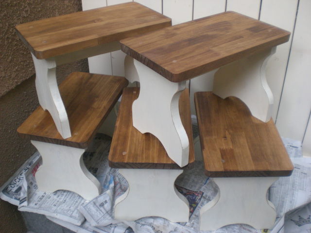 ミニチェアーとミニベンチはサイズが10cmと20cmの大きさで作っていますので玄関やリビングで小さい鉢や雑貨などの置き台にかわいいと思います